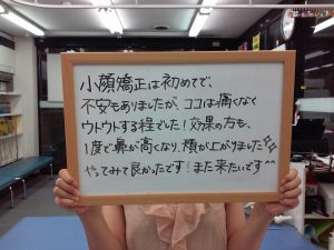 初めて小顔矯正を受けました。不安もありましたが、細かく説明をして頂き、痛みもなく、大変気持ちが良かったです。1回目で変化もあり嬉しかったです!!また来たいです!!