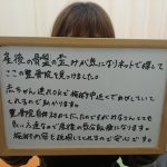 2020年1月28日 / 最終更新日 : 2025年9月16日 nekozane お喜びの声 【お喜びの声】産後骨盤矯正 産後、ずっと気になっていた骨盤のケアをしっかりと行って頂きました。骨や体の動き方や、歪みについても詳しく説明して頂き分かりやすかったです。毎回体がスッキリするのが嬉しかったです。ありがとうございました ※個人の感想です。 […]