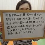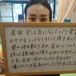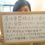 2019年12月17日 / 最終更新日 : 2025年9月16日 nekozane お喜びの声 【お喜びの声】産後骨盤矯正 以前からあった腰・肩の痛みが産後さらに酷くなり通い始めました。先生は詳しく歪みの原因を教えてくれて矯正してくれます。施術後は、身体がとても軽くなりスッキリとします。本当に通ってよかったです。 ※個人の感想です。感じ方・結 […]